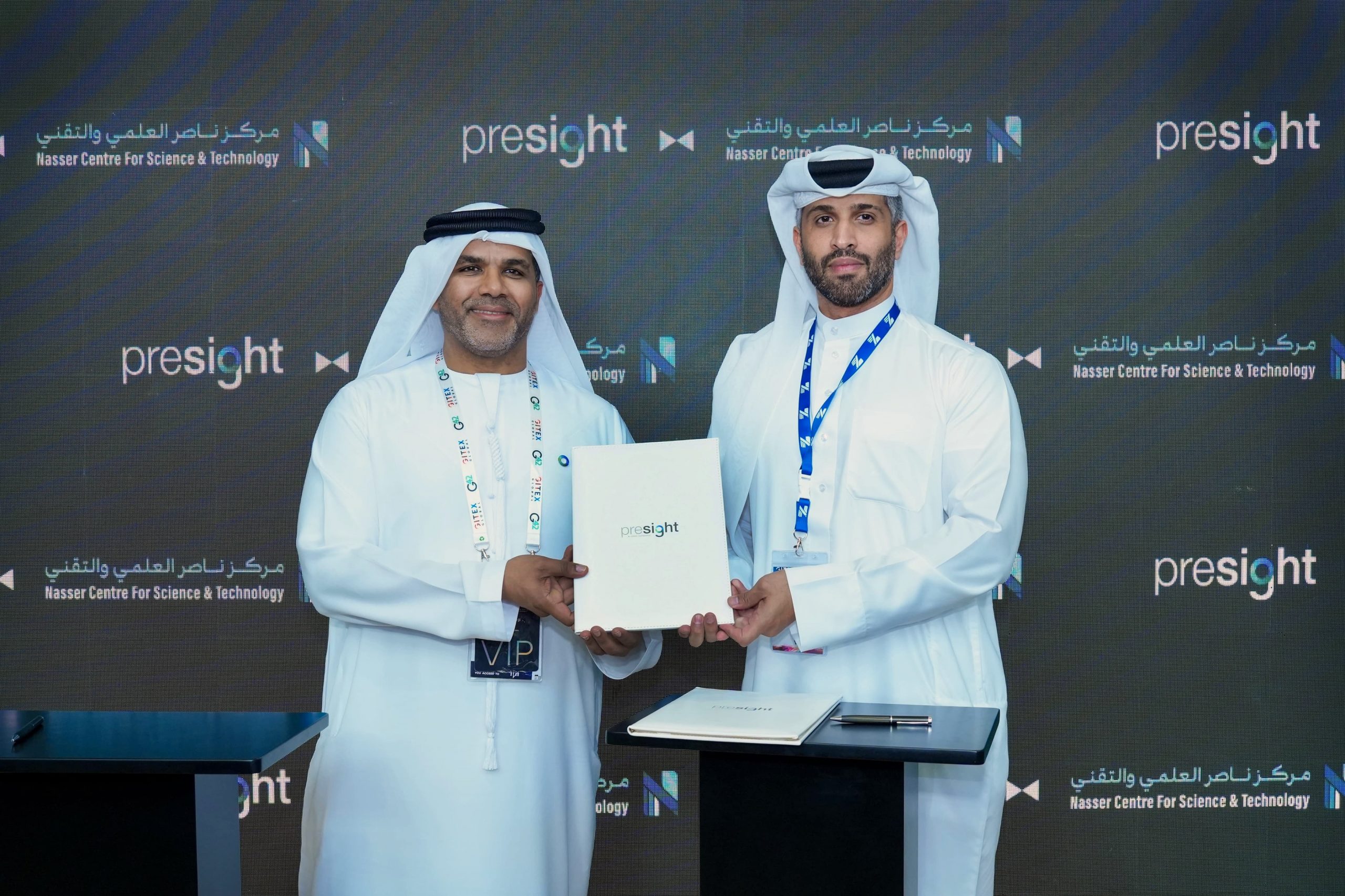 وقع مذكرة التفاهم كل من توماس برامودهام، الرئيس التنفيذي لشركة بريسايت، والدكتور عبد الله بن ناصر النعيمي، الرئيس التنفيذي لمركز ناصر العلمي والتقني، بحضور سعادة منصور المنصوري، نائب رئيس مجلس إدارة بريسايت، والدكتور عادل الشرجي، الرئيس التنفيذي للعمليات في بريسايت، والدكتور جاسم حاجي، المستشار التنفيذي في مركز ناصر العلمي والتقني.