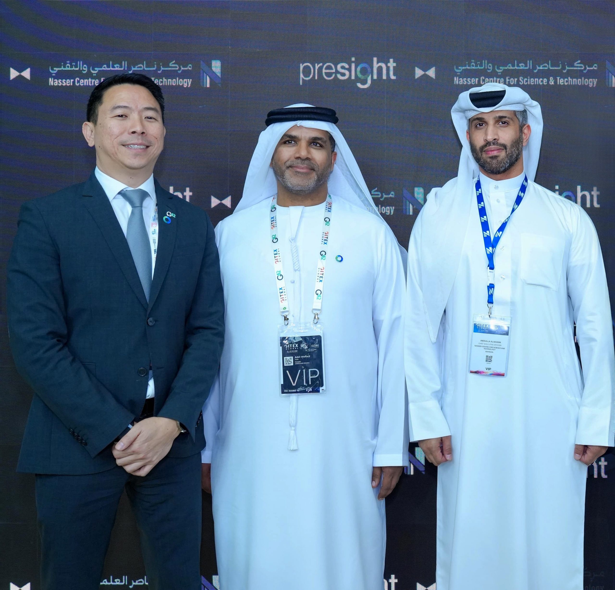 وقع مذكرة التفاهم كل من توماس برامودهام، الرئيس التنفيذي لشركة بريسايت، والدكتور عبد الله بن ناصر النعيمي، الرئيس التنفيذي لمركز ناصر العلمي والتقني، بحضور سعادة منصور المنصوري، نائب رئيس مجلس إدارة بريسايت، والدكتور عادل الشرجي، الرئيس التنفيذي للعمليات في بريسايت، والدكتور جاسم حاجي، المستشار التنفيذي في مركز ناصر العلمي والتقني.